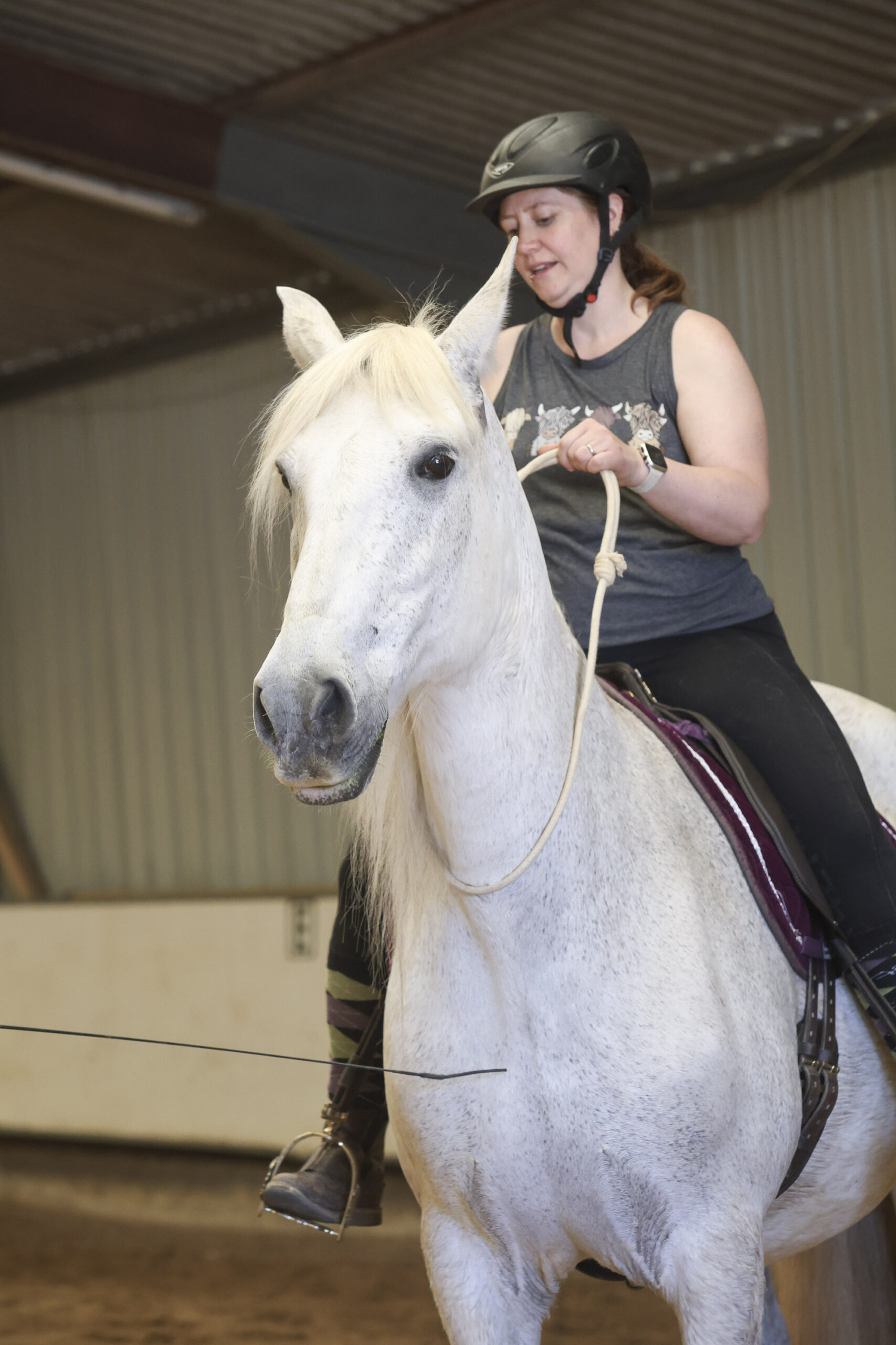 Hanna hat ein sehr geschultes Auge für die Bewegungsmuster des einzelnen Pferdes und die Einwirkung (und Fehler) des Reiters, zugleich hat sie immer Lösungsansätze parat und weiß diese verständlich zu vermitteln. Man könnte es fast zusammenfassen als „weniger Einwirkung – mehr Spaß“ – wobei stets das gesundheitserhaltende Tragen des Reiters im Fokus steht. Macht der Reiter zu viel mit der Hand, kann z.B. die einhändige Zügelführung Wunder bewirken. Klemmigkeit und Dauertreiben konnten durch impulsartiges Treiben, Hand vor und Spaß am Vorwärts behoben werden. Festgestellte Pferdehüften durch die ach-so-geliebten Traversalen gelockert werden.